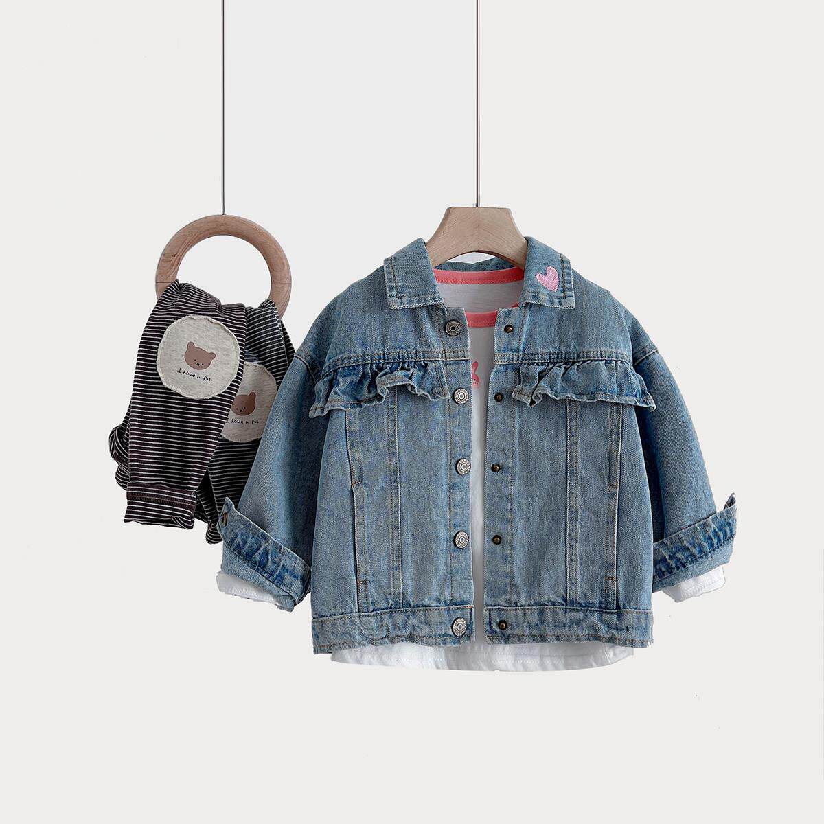 儿童牛仔外套 水洗女童可爱爱心夹克 中大童 童装春秋款 山东网店热门设计联盟服务商