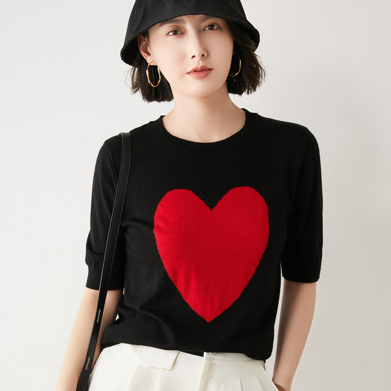2021夏季新款针织爱心设计白色短袖女薄款宽松大码圆领半袖上衣女热门设计联盟服务商