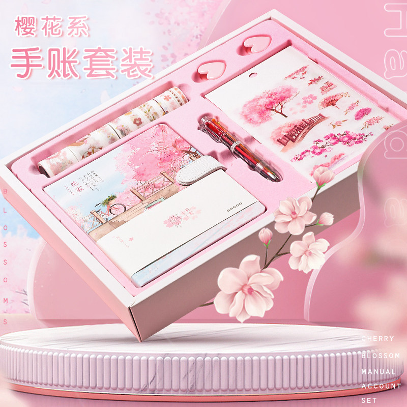 网红少女礼盒套装生日礼可爱樱花手帐本插画彩页本便携手账贴图贴热门设计联盟服务商