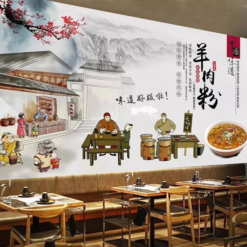 遵义羊肉粉店墙纸快餐店小吃店装修墙面装饰壁画米线汤粉面店壁。热门设计联盟服务商