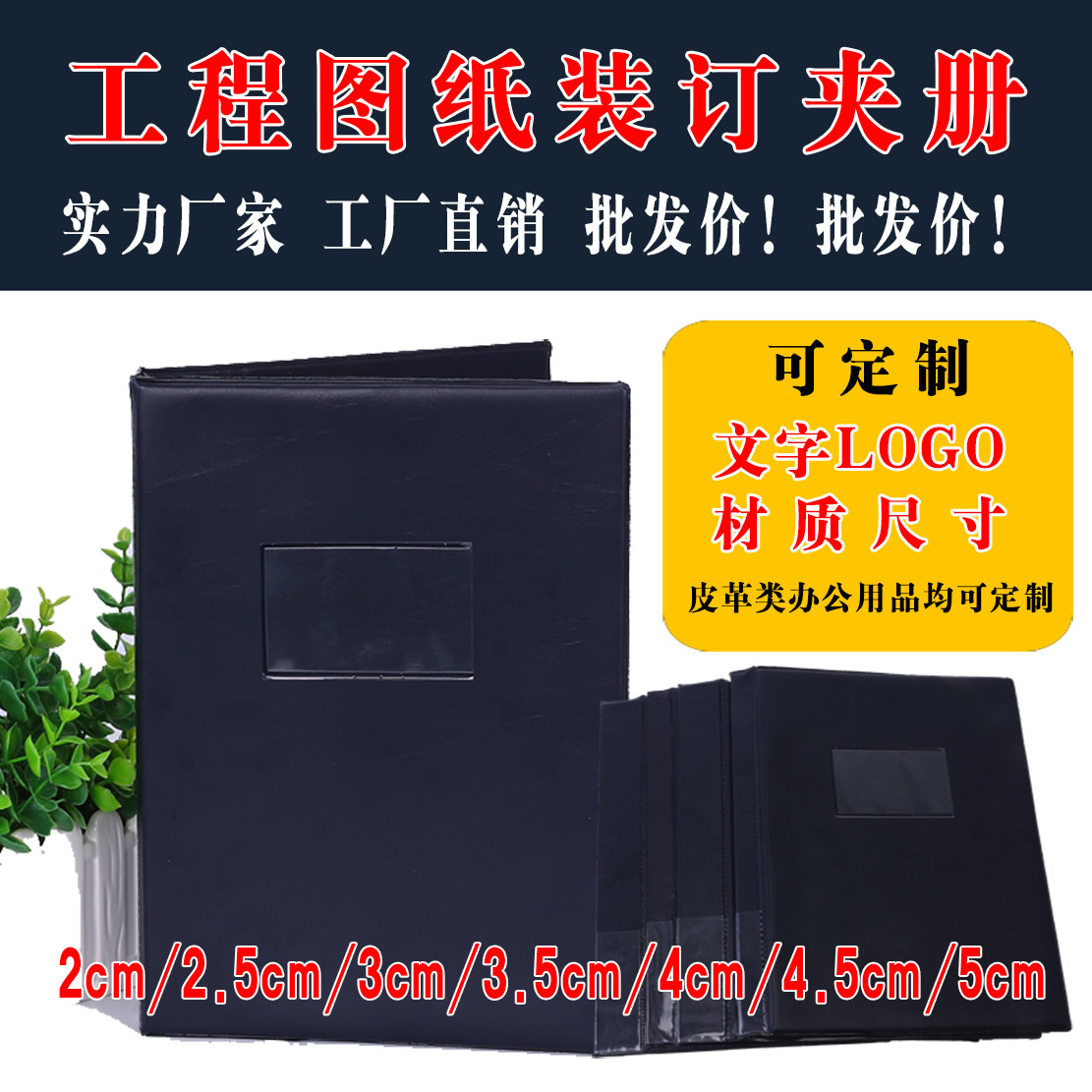 A4工程图纸装订册夹皮革图纸装订夹图纸文夹资料册三孔夹可定做热门设计联盟服务商